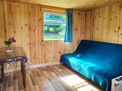 Un bloc sanitaire avec eau chaude et froide, douche et wc,1 bac à vaisselle, 1 bac à linge.